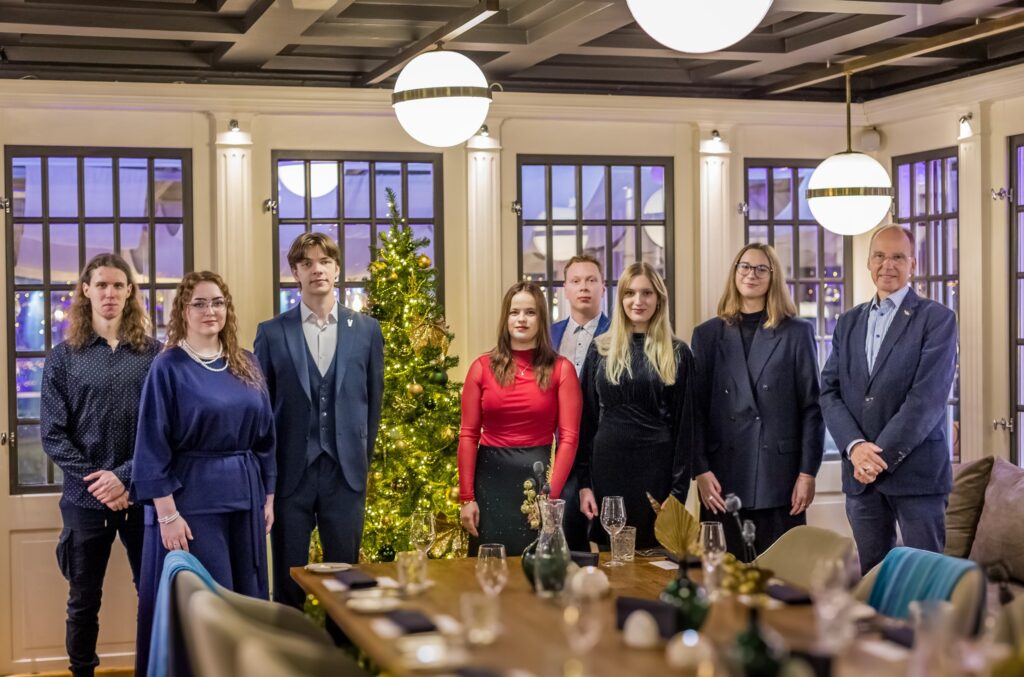Uzņēmējs Jānis Andersons kopā ar stipendiātiem